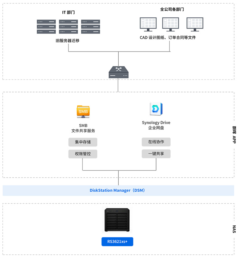通过Synology Drive协同办公平台,梦洁为500多名员工打造了企业级协同工作空间。该方案支持: