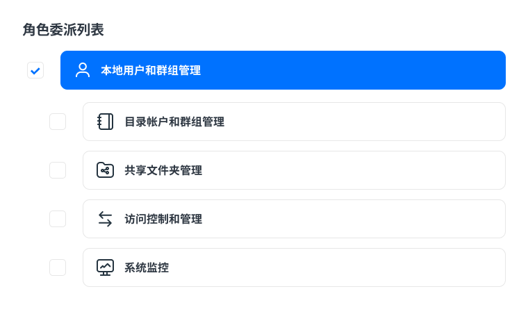 - 将部分权限开放给专人管控,对应公司岗位职级实现分级授权,以减轻 IT 人员设置、变更权限的工作量。