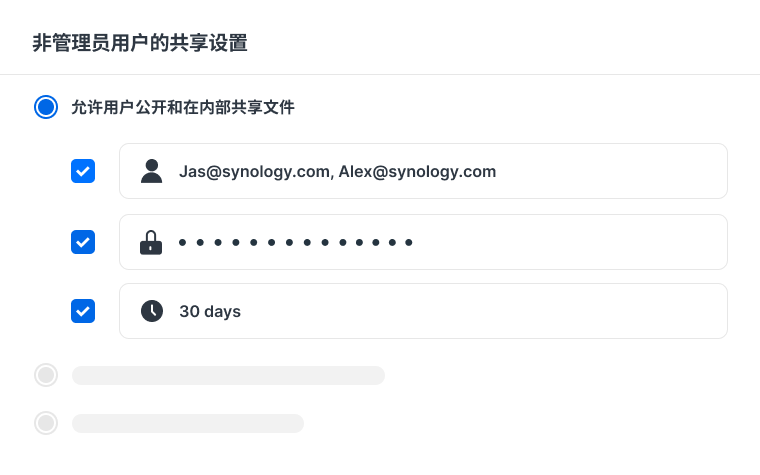 优于文件服务器的分享机制,借助密码、有效期实现安全分享